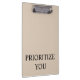 Minimal Prioritize You Quote Beige Klemmbrett