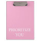 Minimal Prioritize You Quote Dusty Rose Pink Klemmbrett