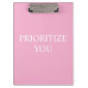Minimal Prioritize You Quote Dusty Rose Pink Klemmbrett