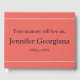 Dieses elegante Beerdigung- oder Gedenkbuch enthält die Meldung "Dein Gedächtnis wird weiterleben", zusammen mit einem individuellen Namen und Geburtsdaten/Todesdaten. Es könnte genutzt werden, um hochgeschätzte Erinnerungen von jemandem aufzuzeichnen, der kürzlich verstorben ist.