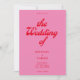Retro Hochzeitseinladung mit moderner Retrotypografie in Rosa und Rot.