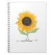 Minimal Rustic Sunflower Personalized Name Script notebook