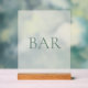 Featuring a clean “BAR” layout in soft sage green typography on clear acrylic, this sign blends beautifully with modern, garden, and classic wedding styles.