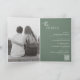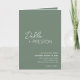 Moderne Olivgrün / Salbei gefaltete Hochzeitseinladung mit einem einfachen und minimalen Design mit dem Namen der Braut in einem eleganten Drehbuch und dem Bräutigam in einem zeitgenössischen serifenlosen Schriftart. Unten unten rechts finden Sie Ihre Veranstaltungsdetails in minimalistischem Layout. Die Innenseite enthält Ihr Lieblings-Foto und Ihre zusätzlichen Details, einschließlich eines optionalen QR-Codes (wenn Sie es vorziehen, kann der QR-Code im Entwurfsbearbeitungsprogramm entfernt werden). Die Rückseite hat zwei weitere optionale Abschnitte für weitere Informationen.