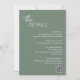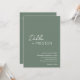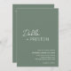 Modernes Oliven-/Salbeigrün in einer Hochzeitseinladung mit einem schlichten und minimalen Design mit dem Namen der Braut in einem eleganten Drehbuch und dem Namen des Bräutigams in einem zeitgenössischen serifenlosen Schriftart. Unten unten rechts finden Sie Ihre Veranstaltungsdetails in minimalistischem Layout. Auf der Rückseite befinden sich Ihre zusätzlichen Details und QR-Code, sodass Sie die Gehäusekarte und die RSVP-Karte überspringen können.