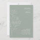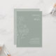 Einfache Minimal Sage Grün weiße Wildblumen Hochzeit Einladung. Stilvoll beeindrucken Sie Ihre Hochzeitsgäste mit dieser schlichten, eleganten, schlauen grünen, blumigen Hochzeitsreise mit einem Set aus weißen Wildblumen auf einem modernen, hellgrünen Hintergrund. Diese Hochzeitseinladung verleiht einem modernen, minimalistischen Ambiente, das perfekt für jede moderne, blumengeschmückte Hochzeit geeignet ist. Diese minimale, blumengeschmückte Hochzeitseinladung wird den Ton für eine hübsche, schlichte Hochzeitslandschaft mit zartem Weiß oder Boho-Blume und einer passenden Brautdekoration aus Weiß oder Moos Set. Eine perfekte Ergänzung zu jeder femininen, rustikalen Hochzeitsfeier. Das Sonntagkollektiv © von Rachel Hannah Gee