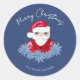 Minimal Santa Niedlich Poinsettia Blau Frohe Weihn Runder Aufkleber