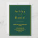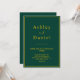 Dieses elegante, grüne und goldene Hochzeitsangebot eignet sich perfekt für eine moderne Hochzeit, das schlichte Design zeichnet sich durch elegante goldene Kalligraphie auf grünem Hintergrund aus.