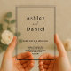 Diese elegante Schwarz-Weiß-Einladung ist perfekt für eine moderne Hochzeit. Das einfache Design zeichnet sich durch elegante schwarze Kalligraphie mit einem Rahmen auf einem klaren Acrylboden aus.