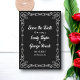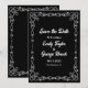 Diese elegante Schwarz-Weiß-Hochzeit spart die Einladung zum Datum und ist perfekt für eine moderne Hochzeit. Das einfache Design zeichnet sich durch einen schönen Blumenrahmen mit eleganter weißer Typografie auf schwarzem Hintergrund aus.