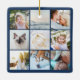 Custom Minimal Simple Foto Collage Grid Navy Blue Familie Weihnachtsschmuck Minimal Schreibmaschine Einfache Foto Collage Grid Keramik Ornament