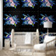 Minimal Schwarz Blau und Rosa Farbblumen Design Tapete