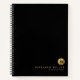 Moderne Minimalistische Schwarz-Gold-Brushed-Metal-Monogram-Medaille Anfangsname Custom Text Notebook