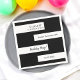 Die elegante schwarz-weiße Serviette eignet sich perfekt für einen modernen Geburtstag und bietet elegante schwarze Kalligraphie auf weißem, gestreiften Hintergrund.