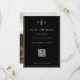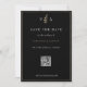: Diese Save the Date Karte erfasst wunderbar das Wesen der modernen Eleganz. Die Vorderseite ist mit einem knusprigen schwarzen Hintergrund mit goldgelben Akzenten und einem QR-Code ausgestattet, der den Zugang zu den Details erleichtert, während die Rückseite mit einem warmen, intimen Foto des Paares aufwartet. Die ausgeklügelte Schriftart-Auswahl auf der Vorderseite verbindet sich nahtlos mit dem herzlichen Bild auf der Rückseite und bietet so einen perfekten Auftakt zu Ihrem besonderen Tag.