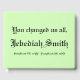 Dieses traurige Bestattungs- oder Denkmäler-Gästebuch enthält die Meldung "Du hast uns alle verändert" und den personalisierten Namen und das Geburtsdatum/das Todesdatum des verstorbenen Menschen. Es könnte genutzt werden, um wohlwollende Wünsche für die Familie und Freunde von jemandem zu erfassen, der kürzlich weitergegeben wurde.