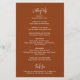 Moderner Terracotta / Kupfer farbene Budget Hochzeitsprogramm Flyer mit einem einfachen Design mit Ihren Namen in einer eleganten Skripttypografie und Ihre Veranstaltung Details in einem minimalen serifenlosen Schriftart. Dieses schicke Hochzeitsprogramm passt gut zu jedem Hochzeitsstil.