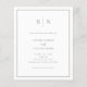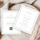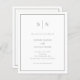 Diese eleganten, modernen, preiswerten All-in-One-Einladungen für Hochzeiten werden auf einem Papierblatt gedruckt. Sie zeichnen sich durch ein schlichtes, weißes und schlaues, minimalistisches Textdesign aus, das an der Grenze einen klassischen Rahmen aufweist. Fügen Sie Ihre Initialen oder Monogramme hinzu, um sie komplett zu Ihrem eigenen zu machen. Die Rückseite der Einladung hat Platz, um alle Gastdetails hinzuzufügen, sowie einen scannbaren QR-Code, damit die Gäste online auf Ihrer Hochzeitswebsite UAWG können.