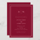 Diese eleganten, modernen Einladungen für Hochzeiten bieten ein einfaches bordeauxfarbenes und hellrosa minimalistisches Textdesign mit einem klassischen Rahmen an der Grenze. Fügen Sie Ihre Initialen oder Monogramme hinzu, um sie komplett zu Ihrem eigenen zu machen.