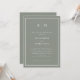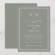 Diese eleganten, modernen Einladungen zum Hochzeitsessen mit Probe sind in einem schlichten, minimalistisch-grünen und weißen Textdesign mit einem klassischen Rahmen an der Grenze gehalten. Fügen Sie Ihre Initialen oder Monogramme hinzu, um sie komplett zu Ihrem eigenen zu machen.