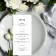 Minimal und Chic | Schwarz-Weiß-Hochzeitsmenü Menükarte