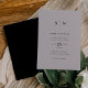 Diese eleganten, modernen Einladungen für Hochzeiten zeichnen sich durch ein schlichtes, hellgraues und schwarzes Textdesign aus, das minimalistisch wirkt. Fügen Sie Ihre Initialen oder Monogramme hinzu, um sie komplett zu Ihrem eigenen zu machen. Die Rückseite der Einladung ist schwarz.