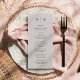 Diese eleganten, modernen, hellgrauen Hochzeitsmenükarten oder Probe Dinner-Menükarten zeichnen sich durch ein schlichtes Schwarz-Text-Design aus, das minimalistisch wirkt. Fügen Sie Ihre Initialen oder Monogramme hinzu, um sie komplett zu Ihrem eigenen zu machen.