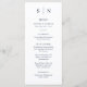 Diese eleganten, modernen Hochzeitsmenükarten oder die Probe Dinner-Menükarten zeichnen sich durch ein schlichtes, weißes und marineblau-blaues Textdesign aus, das minimalistisch wirkt. Fügen Sie Ihre Initialen oder Monogramme hinzu, um sie komplett zu Ihrem eigenen zu machen.