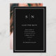 Diese elegante, moderne, schwarze Hochzeit bewahrt die Dattelkarten mit einem einfachen, weißen minimalistischen Textdesign, mit einem klassischen Rahmen an der Grenze. Fügen Sie Ihre Initialen oder Monogramme hinzu, um sie komplett zu Ihrem eigenen zu machen und fügen Sie Ihr persönliches Foto auf der Rückseite hinzu.