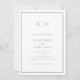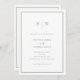 Diese eleganten, modernen und in einer Hochzeitseinladung gehaltenen Zimmer sind mit einem schlichten, weißen und schlauen, minimalistischen Textdesign und einem klassischen Rahmen an der Grenze ausgestattet. Fügen Sie Ihre Initialen oder Monogramme hinzu, um sie komplett zu Ihrem eigenen zu machen. Auf der Rückseite der Einladungen finden Sie Platz für Ihre Hochzeitsdetails (Empfang-Infos, Hotelunterkünfte usw.) und uAwg (einschließlich eines scannable QR-Codes, damit die Gäste online über Ihre Hochzeitswebsite antworten können).