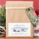 Wandern in einem Winterwunderland Weihnachtsfeiertag Gunst oder Postaufkleber Design. Schöne moderne abstrakte Aquarellmalerei. Teil einer Ferienkollektion. Die Hintergrundfarbe kann angepasst werden.