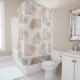 Ein minimales abstraktes Design in Schwarz und Beige auf einem beigen Duschvorhang für das Badezimmer
