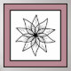 Minimalistische Schwarz-Weiß-Blumenmandala mit dünnen schwarzen Konturen innerhalb einer lila Grenze, gerade rechtzeitig für den Frühling und Sommer.