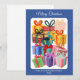 Einfache und moderne Feiertagskarte mit minimalem Design und bunten Geschenkabbildungen. Eine fröhliche Nicht-Foto-Grußkarte, perfekt zum Versenden warmer saisonaler Grüße mit einem sauberen, stilvollen Look. Vollständig anpassbar.