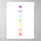 Ein minimales Design der sieben Chakra-Symbole, jedes in seiner Farbe, auf einem reinen weißen Hintergrund. Dekorieren Sie Ihre spirituelle Übungsfläche, Ihre Zuhause oder geben Sie sie einem geliebten Menschen. Chakras sind die konzentrierten Energiezentren des Körpers. Chakra ist ein Sanskrit-Begriff und bedeutet "Rad" oder "Scheibe". Chakras drehen Räder von Energie/Licht. Chakras haben die liebevolle Verantwortung, Energie zu übernehmen, zu integrieren und zu emittieren, um uns behalten, auf optimalen Ebenen zu funktionieren.