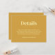 Behalt dein Hochzeitsgeschirr elegant und einfach mit dieser Minimal Wedding Details Einladung. Mit einem sauberen, modernen Layout und zeitloser Typografie eignet sich diese Karte ideal, um alle wichtigen Informationen über Ihren großen Tag zu teilen. Das minimalistische Design sorgt dafür, dass Ihre Details im Mittelpunkt bleiben und dabei jeden Hochzeitsstil ergänzen. Ideal für Paare, die schlichte Eleganz und moderne Ästhetik schätzen.