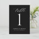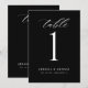 Moderne Minimal Elegant Calligraphy Script Tischnummer Erhöhen Sie Ihren Hochzeitsempfang mit diesen atemberaubenden, modernen, minimalistischen und eleganten Kalligraphieskripten Tischnummern. Diese Tischnummern sind in Schwarz und Weiß gehalten und eignen sich hervorragend, um Ihre Gäste zu den Sitzplätzen zu führen. Das elegante Kalligraphieskript mit Ihrer gewählten Tischnummer, Ihren Namen und dem Veranstaltungsdatum und -ort fügt eine Touch von Eleganz und Romantik hinzu. Das Design ist zweiseitig, sodass das, was Sie auf einer Seite ändern, automatisch auf der anderen Seite aktualisiert wird. Das bedeutet, dass Sie beide Seiten leicht anpassen können, um Ihr Hochzeitstil und Ihre Vorlieben zu erfüllen. Diese Tischnummern sind nicht nur funktionell, sondern auch eine schöne Ergänzung zu Ihrer Tischdekoration. Diese Tischnummern sind perfekt für eine Vielzahl von Hochzeitsstilen geeignet, von klassisch bis modern.