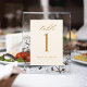 Moderne Minimal Elegant Calligraphy Script Tischnummer Erhöhen Sie Ihren Hochzeitsempfang mit diesen atemberaubenden, modernen, minimalistischen und eleganten Kalligraphieskripten Tischnummern. Diese Tischnummern sind in klassischer Kupfer- und Braut-Heide gefertigt und eignen sich hervorragend, um Ihre Gäste zu ihren Sitzplätzen zu führen. Das elegante Kalligraphieskript mit Ihrer gewählten Tischnummer, Ihren Namen und dem Veranstaltungsdatum und -ort fügt eine Touch von Eleganz und Romantik hinzu. Das Design ist zweiseitig, sodass das, was Sie auf einer Seite ändern, automatisch auf der anderen Seite aktualisiert wird. Das bedeutet, dass Sie beide Seiten leicht anpassen können, um Ihr Hochzeitstil und Ihre Vorlieben zu erfüllen. Diese Tischnummern sind nicht nur funktionell, sondern auch eine schöne Ergänzung zu Ihrer Tischdekoration. Diese Tischnummern sind perfekt für eine Vielzahl von Hochzeitsstilen geeignet, von klassisch bis modern.