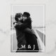 Minimal elegante Hochzeitseinladung mit klassischem Drehbuch, Foto und Namen in echter Folie.
