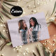 Diese Foto-Überbrückungskarte bietet ein minimales und modernes Design mit einem Bogen, der Ihr Bild mit Ihrer Brautjungfrau enthält. Und ein Kalender, in dem Sie ein Herz auf dem Datum mit einem Bleistift hinzufügen, um Ihre eigene Touch zu der Karte hinzuzufügen.