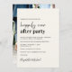 Minimaler moderner Hochzeitsempfang mit heller Creme Save the Date. Die Vorderseite zeigt "Happily Ever After Party" in einer Mischung aus zeitgenössischer Schrift und mutiger trendiger Typografie. Personalisieren Sie Ihre Heiratsankündigung und Save the Date und fügen Sie Ihre Namen in einem signaturähnlichen Skript. Auf der Rückseite finden Sie Ihr Foto, Ihre Namen sowie das Hochzeitsdatum und das Empfang (wenn Ihre Hochzeitsdaten und Ihr Empfang gleich sind, setzen Sie auf die gleiche Linie mit Ihren Namen neben dem Herzen).