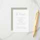 Die Kapselkarte für die Hochzeitsdetails zeichnet sich durch ein elegantes, modernes und sauberes typografisches Design aus. Weiß ist mit einem schlängelgrünen Farbschema versehen. Diese Karte ist für Sie bereit, um die Details Ihres besonderen Tages anzupassen. Bitte stöbern Sie in der Sage Green Elegant Budget Wedding Collection für passende Artikel.