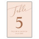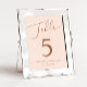 Minimale und elegante Tischnummer mit modernem Skripttext, der oben auf einem rot-rosa Hintergrund "Table" steht.