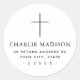 Elegantes Weiß oder jede Farbe Rücksendeadresse Etikett mit einem einfachen, dünnen Kreuz und Ihre Rücksendeadresse unten. Alle Farben sind anpassbar. Verschieben und verändern von Elementen und Text mit dem Designwerkzeug.