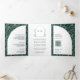 Minimale Linie Art Leaf Arch Smaragdgrüne Hochzeit Dreifach Gefaltete Einladung