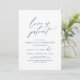 Dies ist die Hochzeitsfeier Einladung Rescheduled (verschoben / verschoben) Karte (Liebe ist geduldig), in der modernen minimalen einfachen Design-Thema, Navy Blue Schriftart.