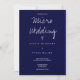 Eine Hochzeitseinladung für eine Mikro-Hochzeit. Diese Einladung wird in dunkelblau und weiß mit gerade genug Informationen gemacht, um den Tag zu gewinnen. Fügen Sie einfach Ihre Informationen hinzu, fügen Sie diese zu Ihrem Warenkorb, und genießen Sie Ihre kleine und intime Hochzeit.