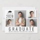 Minimal moderne Abschluss-Ankündigung und Party Einladung mit einer 4-Foto-Collage, "Graduate" in großen Buchstaben über den Boden geschrieben und seine oder ihre Klasse Jahr, Name und Schule oder Universität in einfacher Typografie. Fügen Sie die Party-Details auf der Rückseite hinzu.
