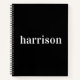 Monogramm schwarzes Notizbuch mit Ihrem Namen in fett minimalen modernen weißen Buchstaben. Fügen Sie auf der Rückseite einen benutzerdefinierten Text hinzu, oder werden Sie leer verlassen. Stellen Sie bei Bedarf die Größe des Schriftartes im Designeditor für längere oder kürzere Namen ein.