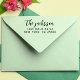 Stilvolle Script-Rücksendeadresse Selbstfarbige Briefmarke Moderne Rücksendeadresse Briefmarke mit Ihrem Namen in einem stilvollen Skript und Ihre Adresse in einfacher Typografie. Rett Zeit und Mühe, indem du deine Rücksendeadresse mühelos personalisierst. Ideal für Hochzeitseinladungen, Party-Ankündigungen, den Briefwechsel im Alltag und Geschäftsmailings. Julie Horton Designs